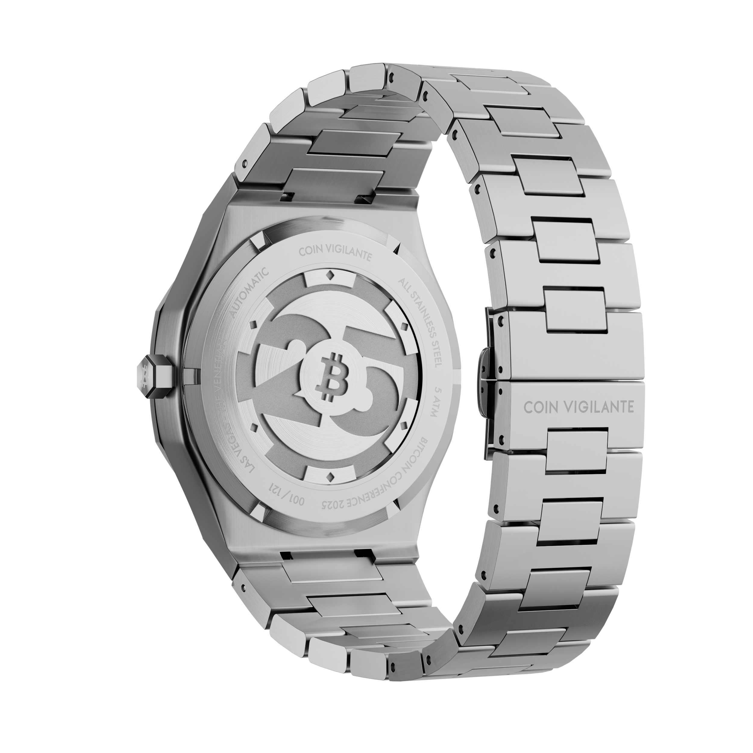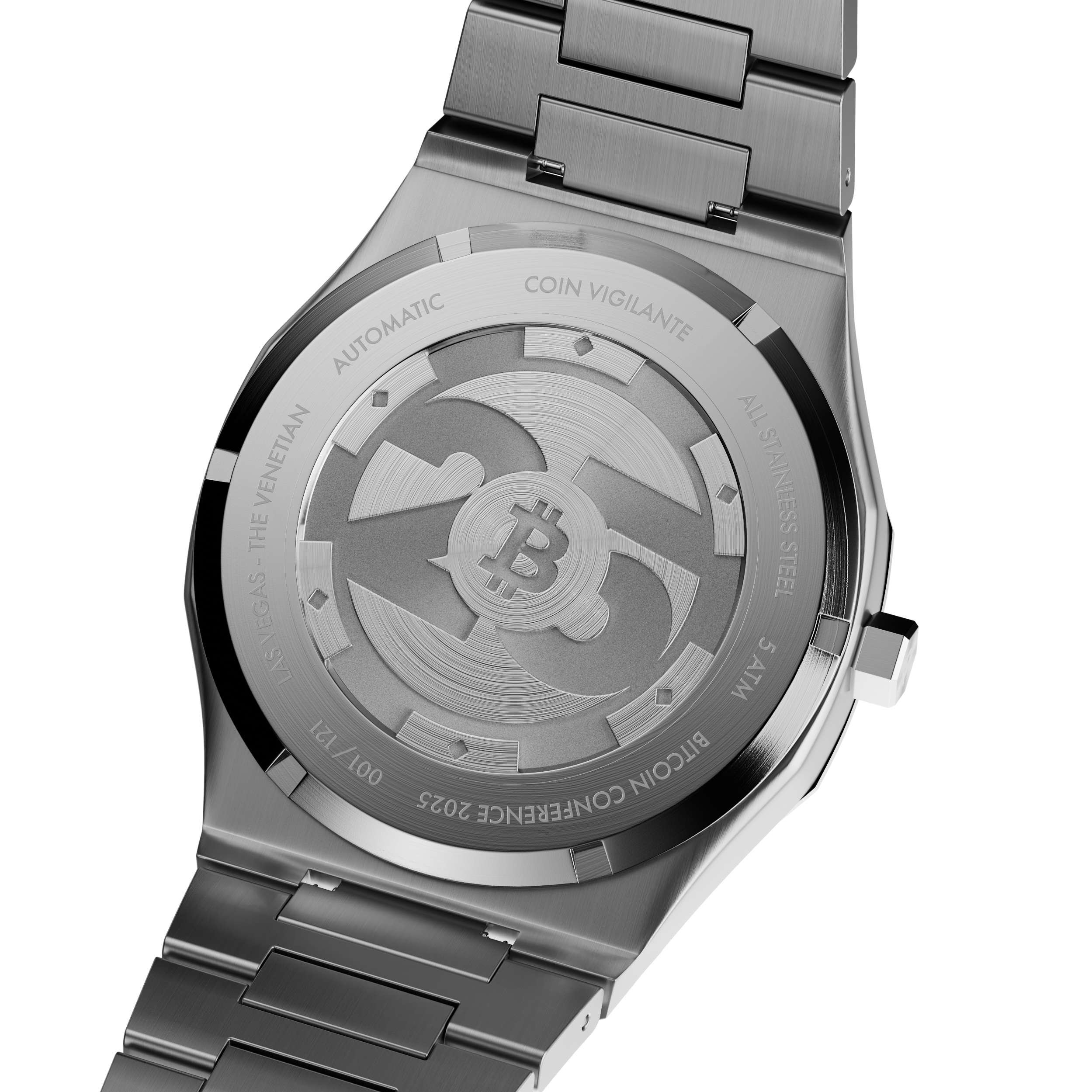 In collaboration with Bitcoin Magazine and the Bitcoin 2025 Conference, we have crafted a timepiece, limited to only 121 individually numbered units. Created to mark a milestone in Bitcoin’s story: the 2025 conference that drew the global community’s eyes to Las Vegas, yet its appeal reaches far beyond a single event. This watch carries the Conference emblem alongside the Bitcoin Magazine seal, securing its place in Bitcoin lore whether you were there in person or celebrating from halfway around the world.Forged in stainless steel with distinctive poker-chip motifs and a sapphire crystal face, it embodies Bitcoin’s bold rebellion against convention. Housed in an collector's wooden case, it declares: Bitcoin is our bet. Each watch, from 001/121 to 121/121, is a unique, authenticated masterpiece, destined to be a cornerstone of Bitcoin’s legacy.Secure your piece of this historic collaboration. Own a symbol of the revolution, and join proud owners in over 50 countries.
